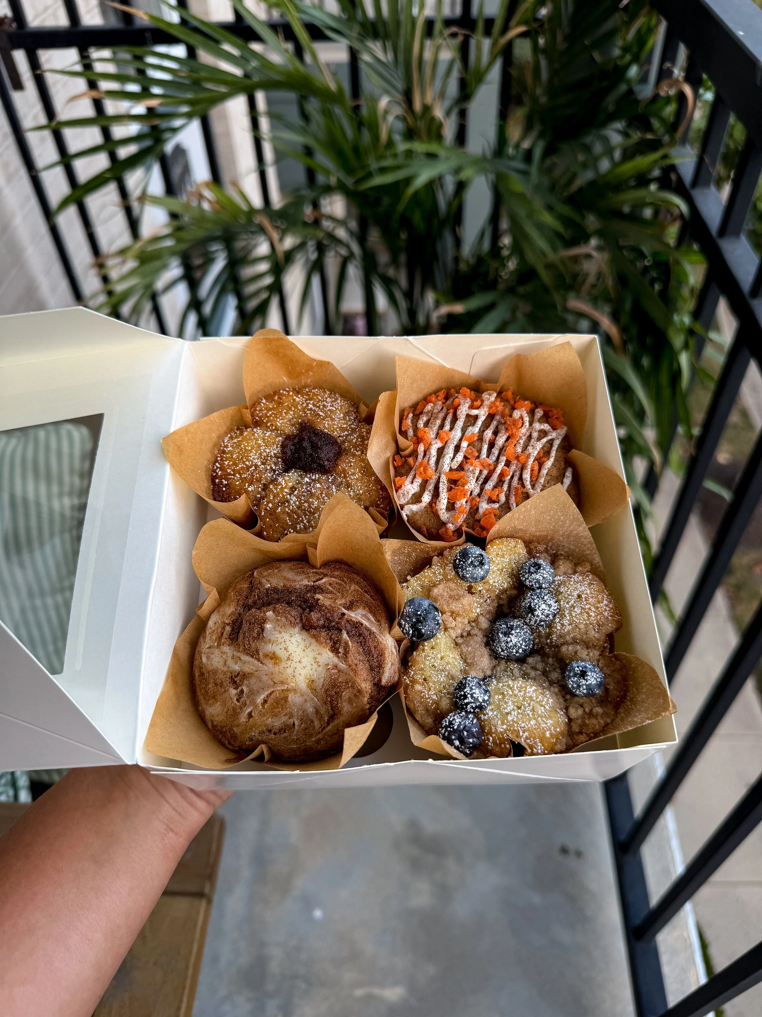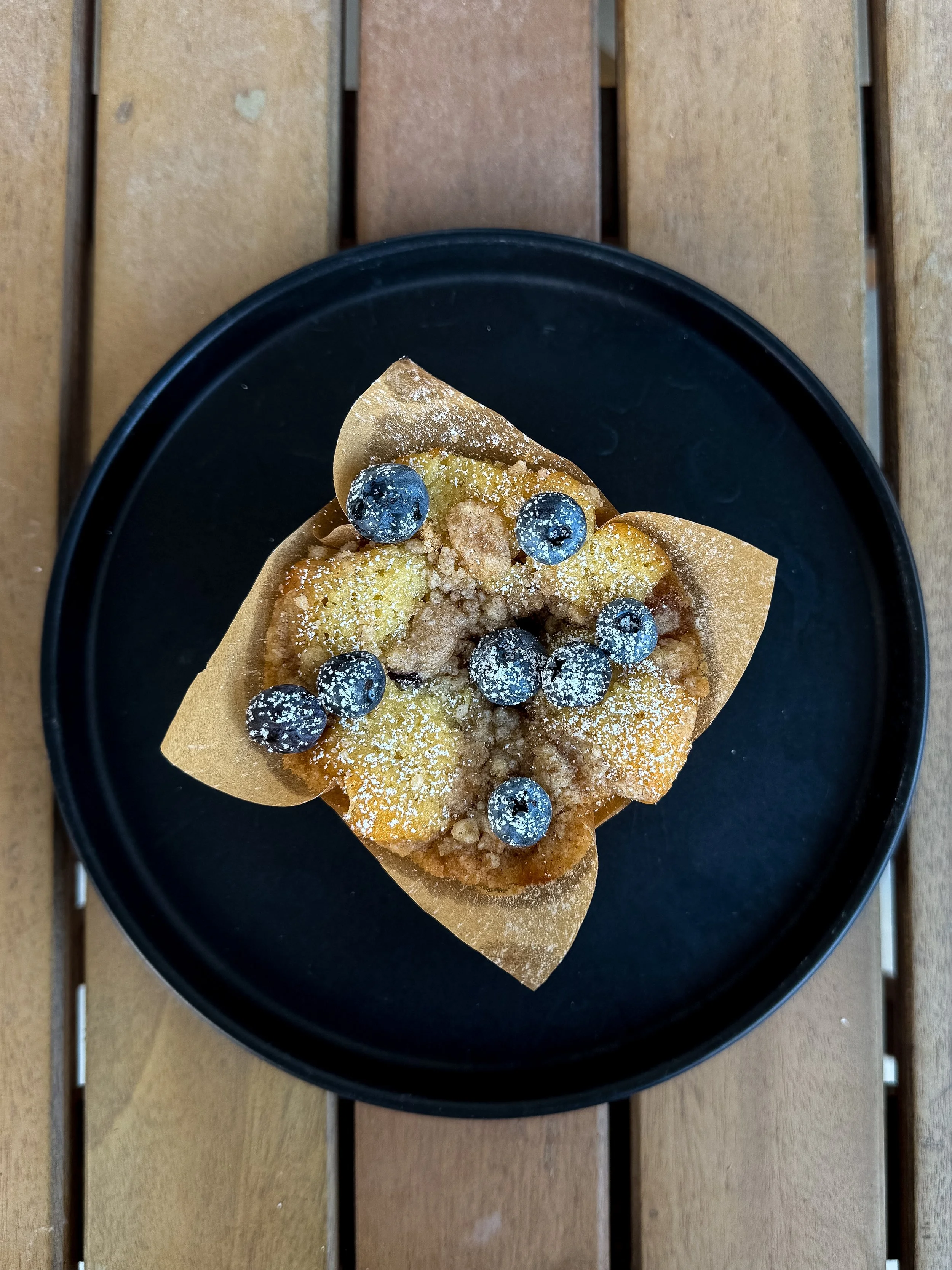 Bursting with juicy blueberries and topped with a buttery cinnamon streusel crumble, this muffin is a classic favorite. The tender, fluffy base pairs perfectly with the sweet-tart berries, while the golden crumb topping adds a little crunch in every bite. Comforting, timeless, and perfect alongside a cup of coffee.